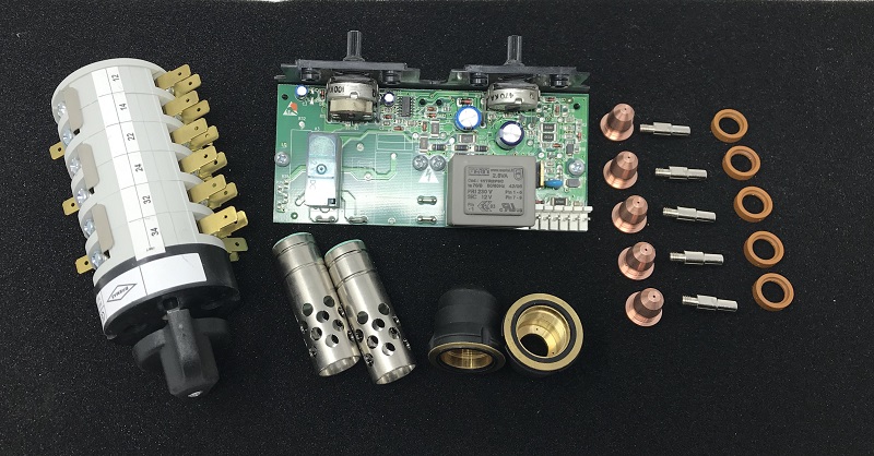 CONMUTADORES, ELECTRODOS PLASMA,DIFUSORES, TOBERAS PLASMA, TARJETAS ELECTRÓNICAS,MOTORES DE ARASTE, PUENTES DE DIODOS, TRANSFORMADORES DE MANIOBRA ETC….
